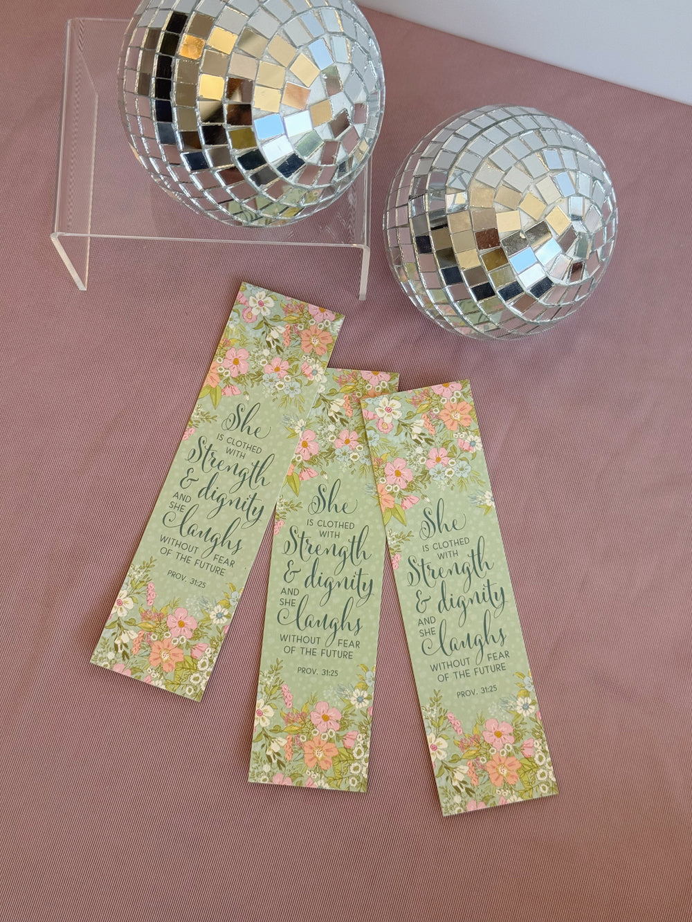 Teal Floral Strength & Dignity Bookmark Prov. 31:25