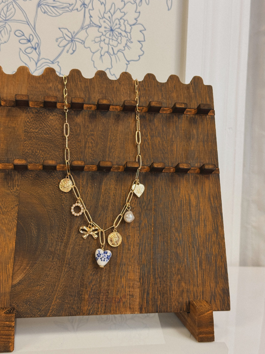 CHARM NECKLACE-CLOVER BOW CROSS HEART