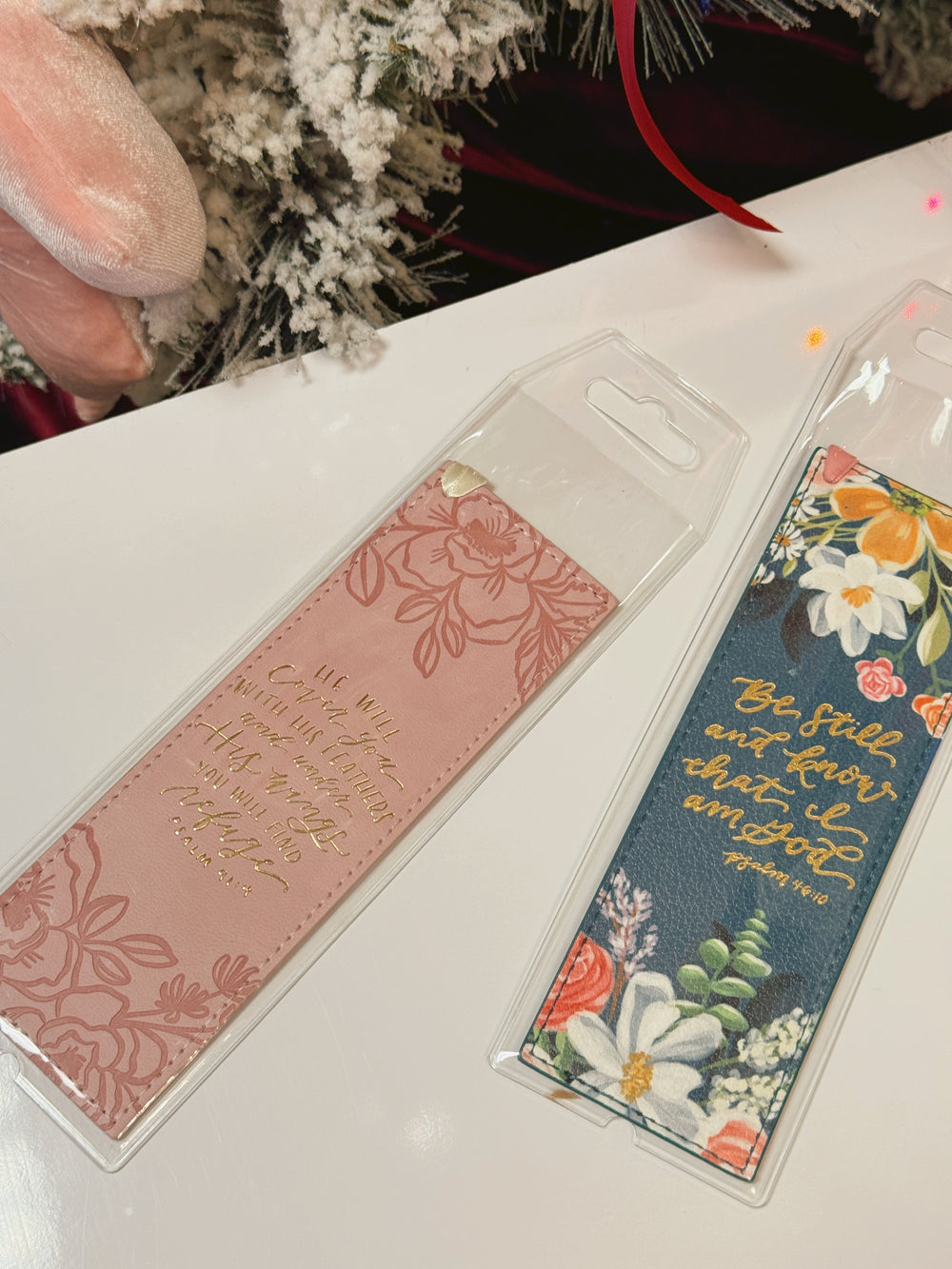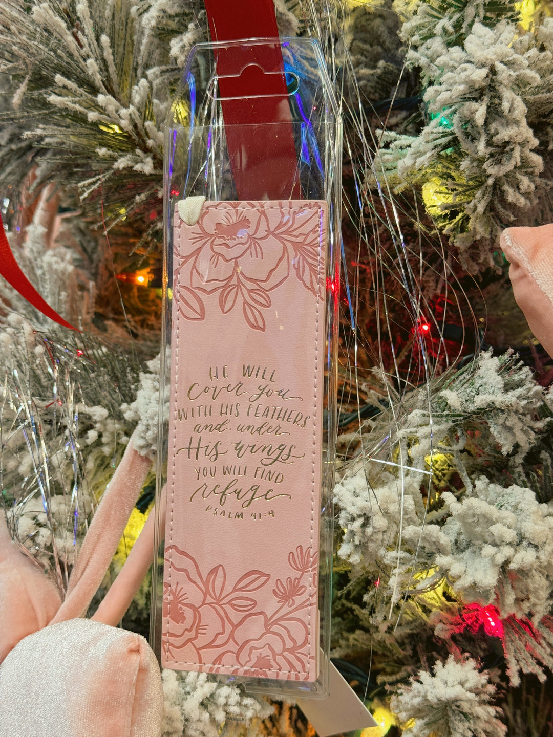 Bookmark Faux Leather Pink He Will Cover You Ps. 91:4