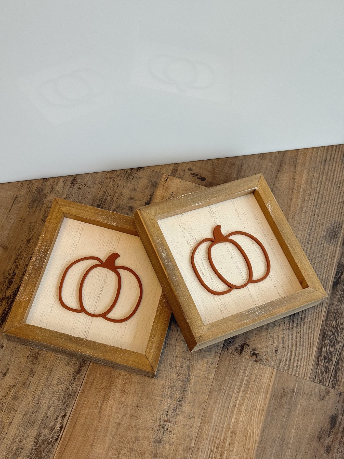Pumpkin laser framed sign, min. 6. 6" W x 6" t x 1" d.