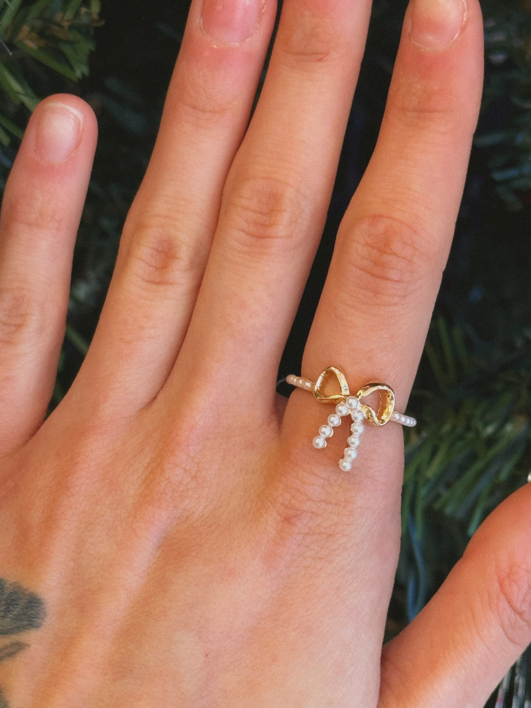 GOLD PEARL BOW RIBBON RING
