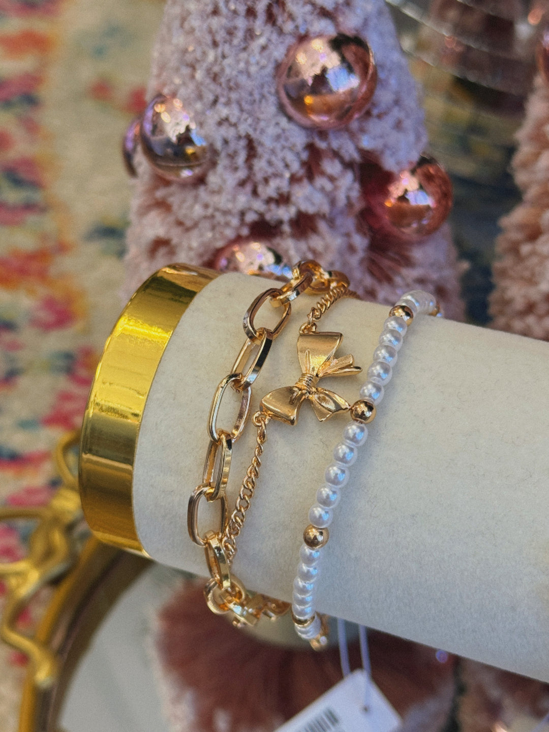 BOW PEARL LINK TRIO SET BRACELET