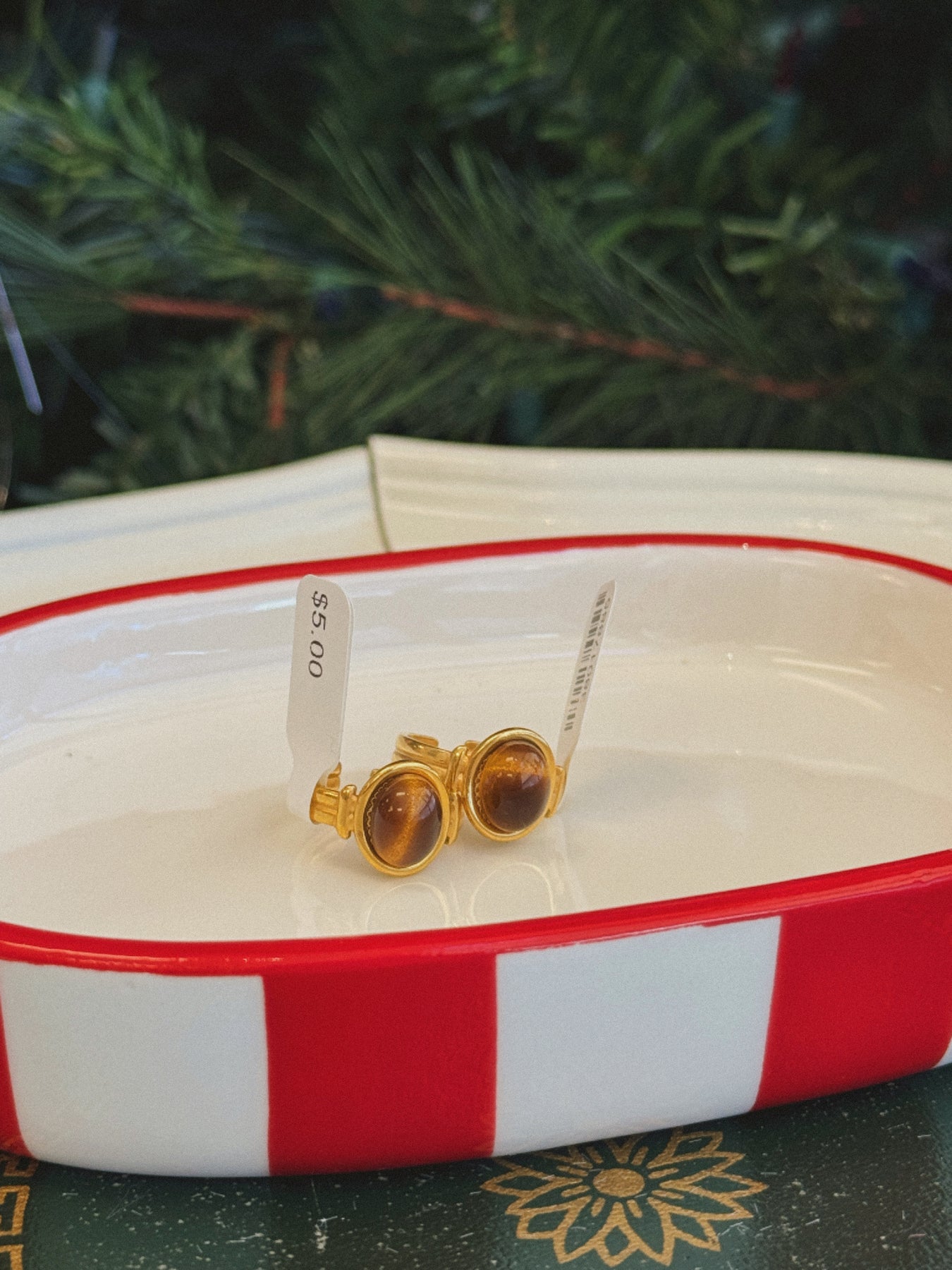 18K Stainless Steel Tarnish-Free Adjustable Abstract natural stone sun blast Ring. Featuring a delicate abstract with natural stone in the middle with sun blast design, crafted from premium 18K stainless steel, it ensures a tarnish-free shine and long-lasting durability. The adjustable design provides a comfortable and customizable fit.