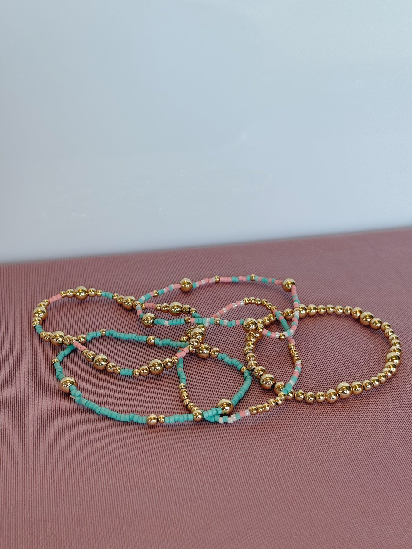 Natural Stone Semi-Precious Stone Bead Bracelet, this bracelet features an array of semi-precious stone beads, each showcasing unique colors and natural patterns that make every piece one of a kind. They can be worn alone or stacked with other bracelets, it's a beautiful way to embrace the natural beauty of semi-precious stones.