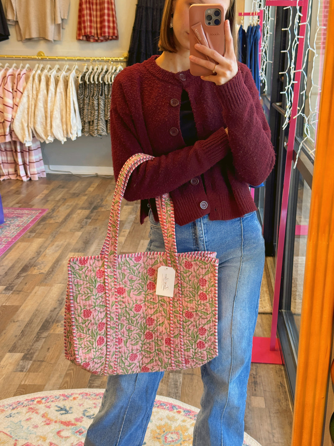 Claire Pink Floral Tote Bag