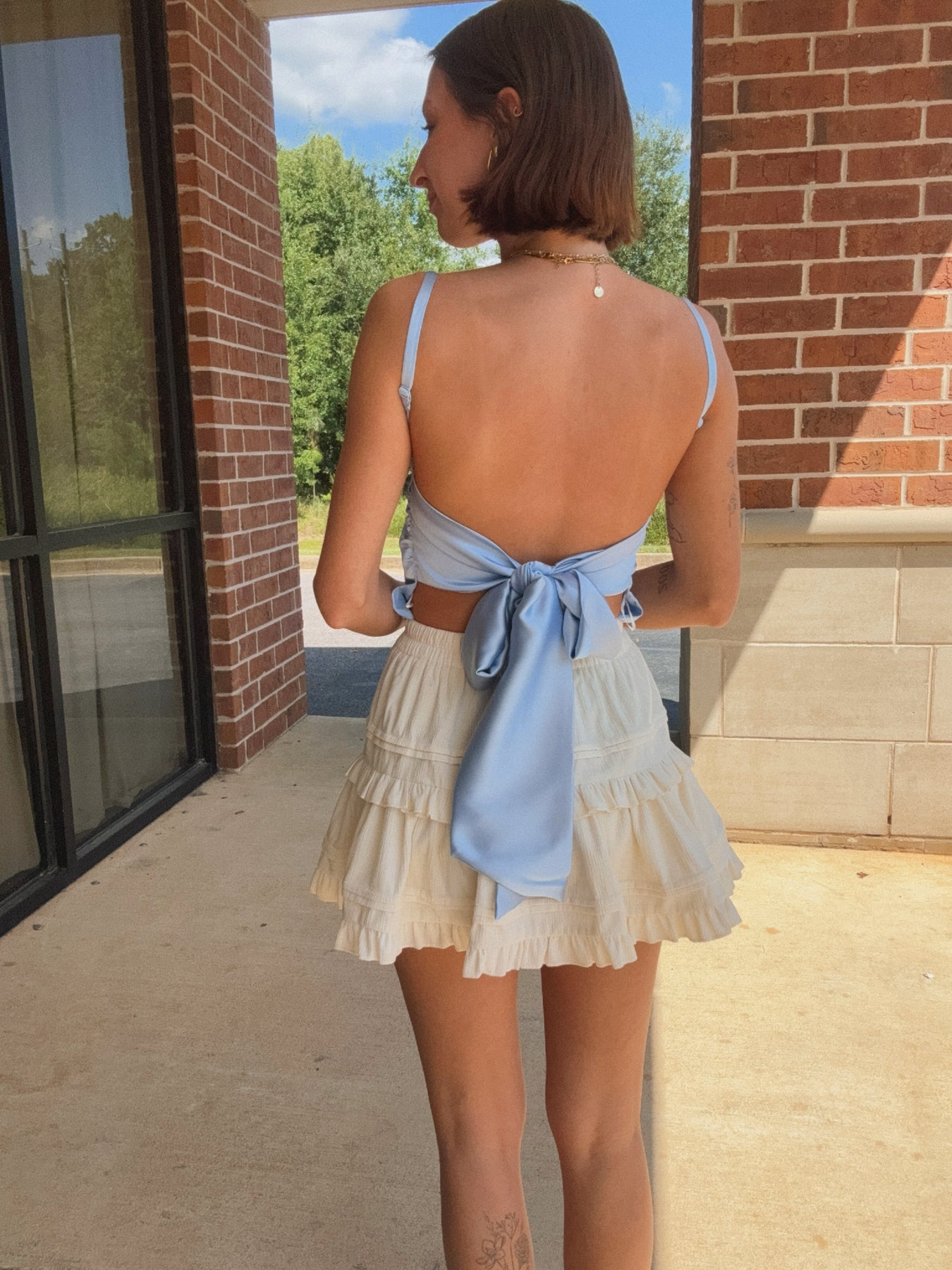 Get Dressed Up For The Night In This Stunning Satin Top. Dainty Shoulder Straps Fall To A Straight Cut Top That Offers Backless Detailing. Thick Straps Are Spotted At The Back Which Tie Into A Big, Flirty Bow.